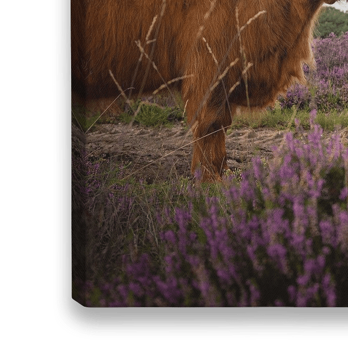 Schotse hooglanders op de bloeiende Westerheide bij Laren, in het Goois Natuurreservaat. Deze foto is genomen in september, toen de heide volop in bloei stond.