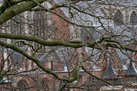 Zicht op de Hooglandse Kerk n het stadscentrum van Leiden. Foto genomen vanaf de Burcht in Leiden