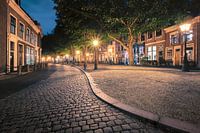 Met name de Hooglandse Kerkgracht ligt direct naast de Hooglandse Kerk, een prachtige kerk die in 1377 werd voltooid. De foto vangt de grootsheid en rust van het historische stadscentrum, waardoor het een perfecte aanvulling is op elke ruimte die behoefte heeft aan een vleugje geschiedenis en charme.
