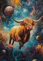 Koop dit schotse hooglander kunstwerk Hooglandse koe in de ruimte van Niklas Maximilian als print op canvas, aluminium dibond, (ingelijste) fotoprint, behang en ArtFrame. Voor jou op maat geprint in Fine-Art kwaliteit.