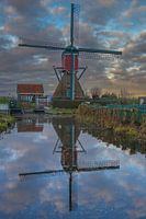 Tijdens deze ochtend was er een fraaie wolkenlucht die samen met de molen een mooie spiegeling en sfeer geeft.