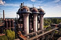 Voormalige hoogoventerrein in Duisburg Noord omgetoverd tot een park waarbij je de mogelijkheid hebt om de hoogoven te beklimmen.