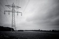 Zwart-wit foto van een hoogspanningsmast op het landgoed Zoomland (bij Bergen op Zoom), welke onderdeel is van de Brabantse Wal.