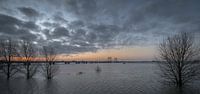 Hoog water bij de Prins Willem-Alexanderbrug, vaak afgekort tot PWA-brug. Het is de brug over de Waal tussen Echteld en Beneden-Leeuwen.