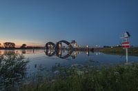De twee vizierschuiven (boogvormige staalconstructies) van stuw- en sluizencomplex Amerongen staan omhoog in verband met het hoge water.