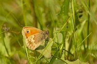 Hooibeestje, oranje vlinder op een groene bokeh achtergrond - Coenonympha pamphilus