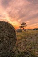 Hier zien we de geperste hooirollen op het tarweveld op de grens van Zoelen - Maurik, gemeente Buren in de Betuwe.