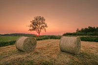 Koop dit landschapskunstwerk Hooirollen op een weiland bij zonsondergang van Moetwil en van Dijk - Fotografie op canvas, aluminium dibond, (ingelijste) fotoprint, behang en ArtFrame, op maat geprint in Fine-Art kwaliteit.