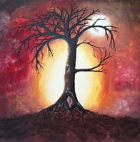 Het motief van mijn acrylschilderij toont een zielenboom: hoop is een sprankje hoop als de ziel zich zijn kracht moet herinneren. Acrylschilderen