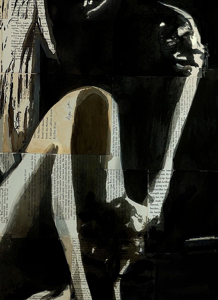 Dit werk maakt deel uit van de lopende gezicht-serie urks die inkt en andere media op vintage boekpagina's creëerden.