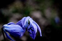 Fijne, paarse vroege bloeiers in close-up tegen een donkere wazige achtergrond