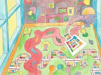 Dit werk maakt deel uit van mijn huidige reeks 'Denkbeeldige Kamers'. Deze reeks werken ben ik begonnen in november 2005 bij het bezoek aan een vriend die een surrealistisch schilderij aan de muur had hangen. Het gebruik van symbolen om te communiceren met de kijker nodigde me uit om deze reeks te beginnen.