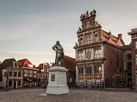 Plein in het Noord-Hollandse Hoorn met het standbeeld van Jan Pieterszoon Coen in de late middagzon.