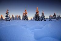 Magisch moment als in de koude winterse schemering het eerste zonlicht op de top van de bomen verschijnt. Het is rood als een vlam. Je moet nog even overleven en dan wordt het snel warmer.