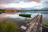 Koop de foto Hopfensee met steiger en roeiboot van Leo Schindzielorz op canvas, aluminium dibond, (ingelijste) fotoprint, behang en ArtFrame, op maat geprint in Fine-Art kwaliteit.