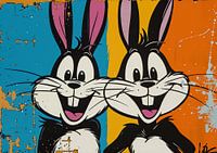 Details: konijn, pop-art, vrolijk, blauw, oranje, geel, zwart, wit, humor