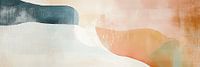 Horizon | Gentle Hues of Peaceful Thought - Dit abstracte schilderij toont een reeks zachte, overlappende vormen in subtiele kleurnuances van donkerblauw, wit, oranje en verschillende tinten roze die vloeien en de indruk wekken van een zachte horizon of een serene landschap.