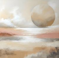 Ervaar de rust van een horizon vastgelegd in zachte beige en roze olieverftinten, waar hemel en aarde elkaar in harmonie ontmoeten. Dit werk vangt de subtiele overgang van dag naar nacht, en brengt een kalme, dromerige sfeer in je interieur. De delicate kleuren zorgen voor een serene ambiance, perfect om elke ruimte een tijdloze, elegante uitstraling te geven. Laat je betoveren door deze rustige, minimalistische weergave van de natuur.