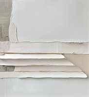 De scheidingen tussen de lagen lijken natuurlijke overgangen te symboliseren, zoals geologische aardlagen of de vloeiende grenzen van zandduinen. De delicate lijnen en randen suggereren een spel tussen kracht en zachtheid, stabiliteit en kwetsbaarheid. Dit werk is zowel abstract als poëtisch en nodigt de kijker uit om de betekenis van gelaagdheid en eenvoud te overdenken.