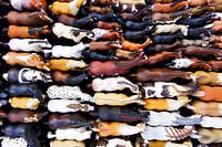 Een bijzonder perspectief van speelgoedpaarden op een rommelmarkt.
