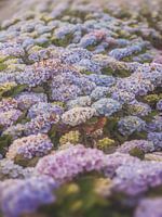 Een levendige haag van Hydrangea bloemen in de zomer