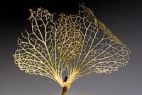 Een droge bloemblaadje van hortensia bloem tegen een donkere achtergrond