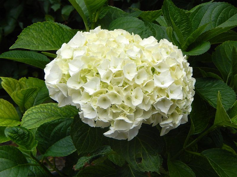 Hortensia in de tuin , mooi als poster of behang, brengt buitenleven in je huis, witte hortensia, werk aan de muur