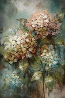 Dit kunstwerk, getiteld "Hortentia," toont een mooie weergave van hortensia's in volle bloei. De zachte kleuren en gedetailleerde weergave van de bloemen stralen een gevoel van elegantie en romantiek uit. De variatie in tinten, van delicate pastels tot rijkere nuancen, brengt de natuurlijke schoonheid van deze bloemen tot leven. De achtergrond is waarschijnlijk subtiel en zorgt ervoor dat de hortensia's centraal staan, waardoor de kijker de textuur en de fijne details van de bloemblaadjes kan waarderen. Dit werkj is perfect voor liefhebbers van botanische kunst en voegt een frisse, natuurlijke sfeer toe aan elke ruimte.