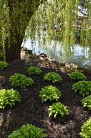 Hosta's onder de bomen, Montréal, Québec, Canada
