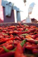 Peppers die liggen te drogen in Laos. Dit is iets wat je veel terug ziet in Azie en is natuurlijk een belangrijk onderdeel van de smaak in de aziatische keuken.