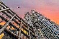 Hotel Motel One Berlin in Upper West van onderaf gefotografeerd.