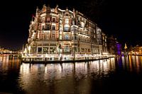 Hotel de l'Europe te Amsterdam tijdens het kerstseizoen. Dit hotel ligt midden in het centrum en is een van de beste van de stad met 5 sterren. Het gebouw is in 2001 aangewezen als rijksmonument. De lichten van de kerstverlichting weerspiegelen in de Amstel