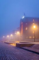Koop de foto Hotel in de mist, Houthavens, Amsterdam van Lizzy Komen op canvas, aluminium dibond, (ingelijste) fotoprint, behang en ArtFrame, op maat geprint in Fine-Art kwaliteit.