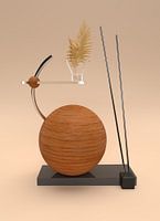 Drie dimensionaal abstract design met hout, glas, metaal en marmer. Zie ook Zwarte kolom om een tweeluik te maken. Komt het best tot zijn recht op plexiglas/acryl.