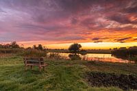 Koop de foto Houten bankje in de Poelboerderij biedt uitzicht op de Poel in Wormer van Bram Lubbers op canvas, aluminium dibond, (ingelijste) fotoprint, behang en ArtFrame, op maat geprint in Fine-Art kwaliteit.