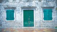 Vroeg in de ochtend, wanneer Kotor nog slaapt, viel mijn oog op iets ogenschijnlijk eenvoudigs. Een groene houten deur, geflankeerd door twee groene houten raamluiken. Geen groot gebouw, geen plein, geen uitzicht. Alleen dit stukje gevel in een stille straat.