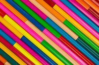 Collectie van bont gekleurde potloden in een diagonaal lijnenpatroon als achtergrond foto