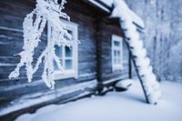 Tijdens een wintervakantie in Finland waren we op bezoek in het Nationaal Park Koli. Om lopend de top van de berg te bereiken, moest we via een klein paadje achter dit huisje langs.