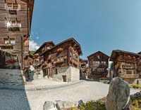 Houten huizen van een bergdorp, Grimentz, Wallis - Valais, Zwitserland