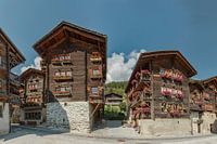 Houten huizen van een bergdorp, Grimentz, Wallis - Valais, Zwitserland
