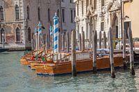 Houten speedboten in oude stad van Venetie, Italie