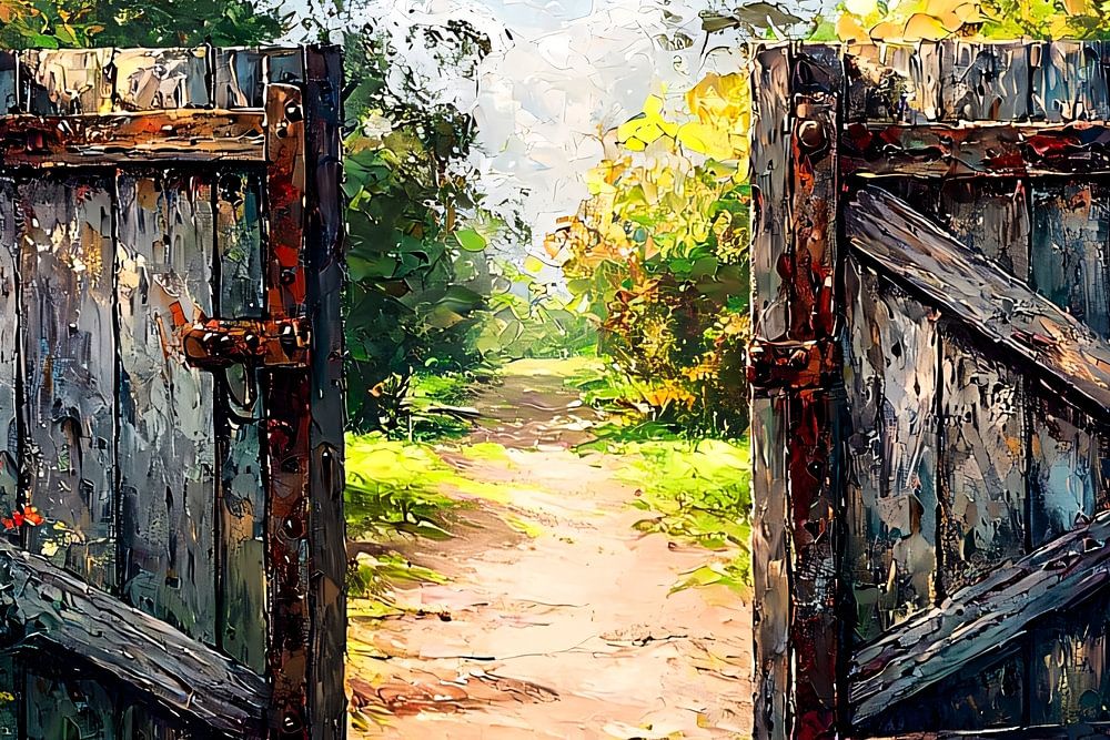 Laat je meevoeren naar een serene en kleurrijke wereld met dit prachtige schilderij van een oude houten tuinpoort. Omgeven door levendige bloemen en stralend zonlicht, roept het beeld een gevoel van rust en nostalgie op. De handgeschilderde textuur en rijke kleuren brengen de schoonheid van de natuur direct in je interieur. Perfect voor een klassieke of landelijke inrichting, dit kunstwerk is een echte blikvanger die warmte en charme toevoegt aan elke ruimte. Hang het in je woonkamer, hal of eetkamer en laat je elke dag inspireren door de tijdloze elegantie van dit unieke ontwerp.