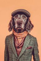 Stel je een elegante Hovawart voor die poseert in een stijlvol tweed pak en een charmante hoed. Zijn zachte, expressieve gezicht straalt intelligentie en loyaliteit uit, terwijl de kleurrijke sjaal zijn unieke stijl onderstreept. Deze mix van waardigheid en speelse charme maakt hem tot een uitzonderlijke metgezel en een echte heer op vier poten.