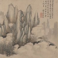 Huang Jun was een Chinese schilder uit de late Qing-dynastie, bekend om zijn gevoelige weergaven van landschappen in traditionele stijl. Hij oriënteerde zich op de oude meesters uit de Song en Yuan periodes en combineerde klassieke schildertechnieken met zijn eigen poëtische beeldtaal. Huang Jun maakte meestal werken in inkt op papier of zijde, met rustige, contemplatieve uitzichten op de natuur - bergen, rivieren, bamboebossen en pagodes in de mist. Zijn schilderstijl wordt gekenmerkt door fijne lijnen, evenwichtige compositie en atmosferische diepte. In geleerde kringen werd Huang Jun beschouwd als een gecultiveerde literaire schilder die schilderen zag als een uitdrukking van innerlijke harmonie en spirituele reflectie.