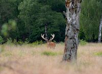 portret van Hubertus, een mannelijk edelhert dat leeft op park de Hoge Veluwe