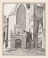 Uit een serie van zes tekeningen over Enkhuizen van Luns.