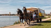 Huifkar getrokken door paarden op de Dellewal bij West-Terschelling