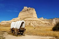 Een herinneringen aan de dagen van het oude westen in de Verenigde Staten, toen gezinnen met huifkarren door de prairies trokken op weg naar een nieuw bestaan. Deze huifkar is gefotografeerd in de staat Nebraska.