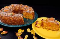 Huisgemaakte worteltaart vers gebakken en versierd met marsepeinen worteltjes