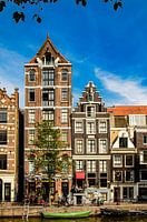 Huisgevels en straatboten op een gracht in Amsterdam Nederland